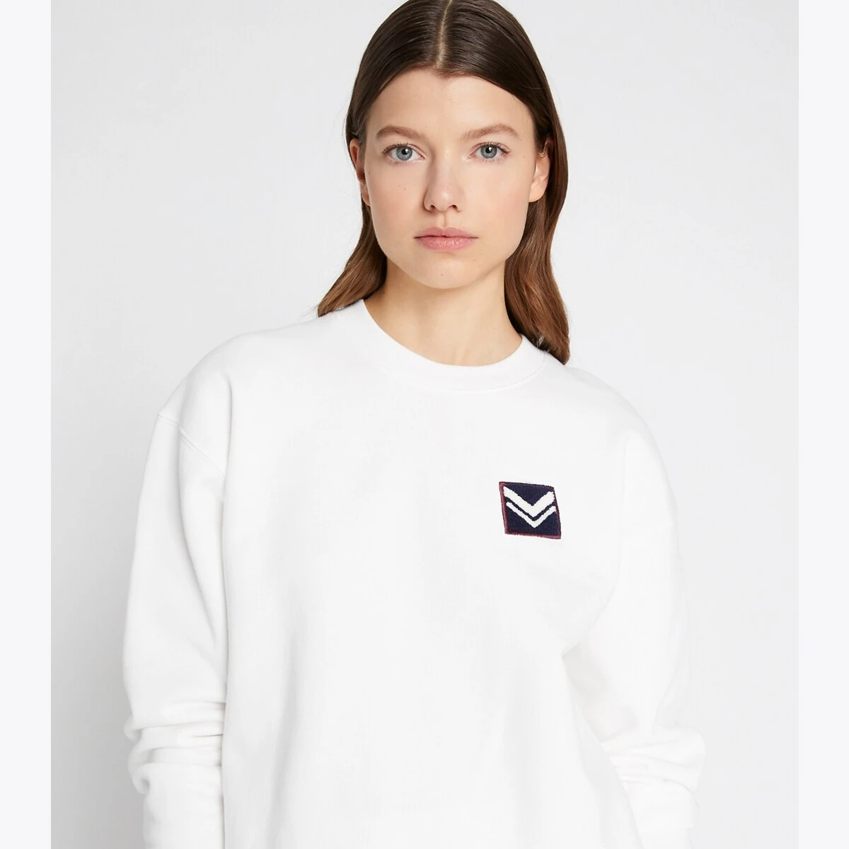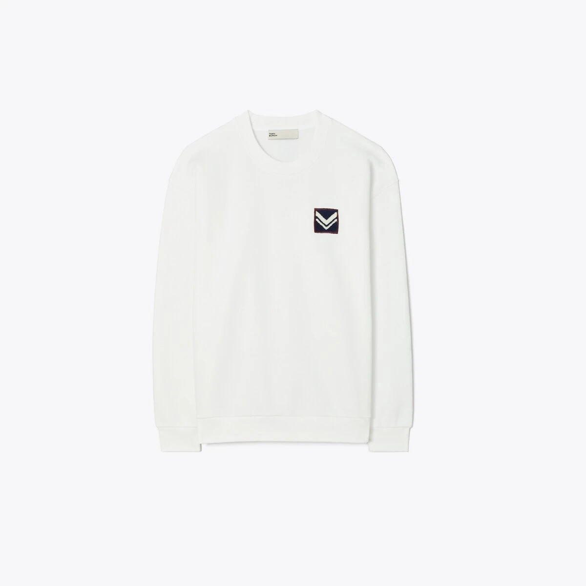 A subtle chevron appliqué updates a classic crewneck. Crafted in soft French terry cotton, the cozy sweatshirt offers a minimal take on an off-duty staple.