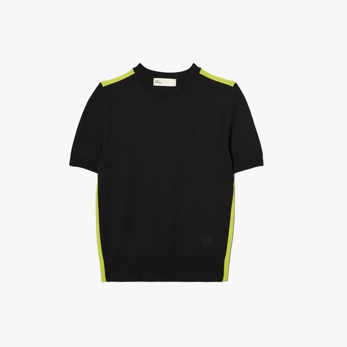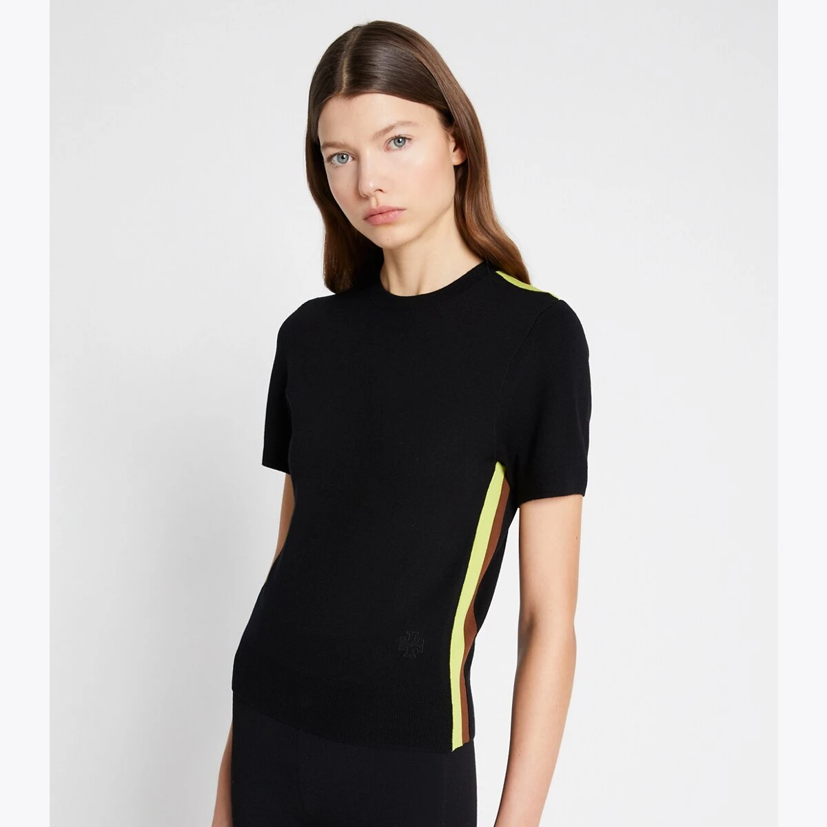 A versatile classic, our short-sleeve sweater is knit with worsted merino wool and detailed with two-toned stripes on the shoulder and side seams. The timeless design can be dressed up for the office or down for a sportswear-inspired look.