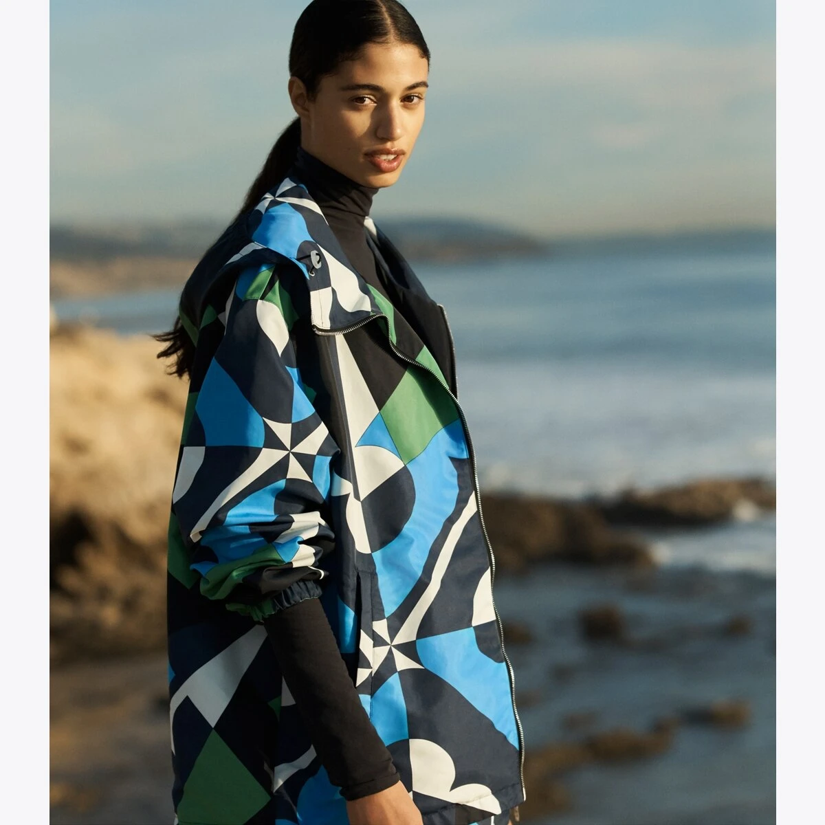 Evolving the role that sportswear plays in the contemporary wardrobe, our Printed Nylon Short upgrades a timeless style to be a versatile, wear-anywhere design. The oversized short is engineered in nylon twill — a dense weave favored for its crisp nature and durable structure. An elastic waist adds comfort and ease, while our abstracted compass print appears with subtle variations unique to each piece.