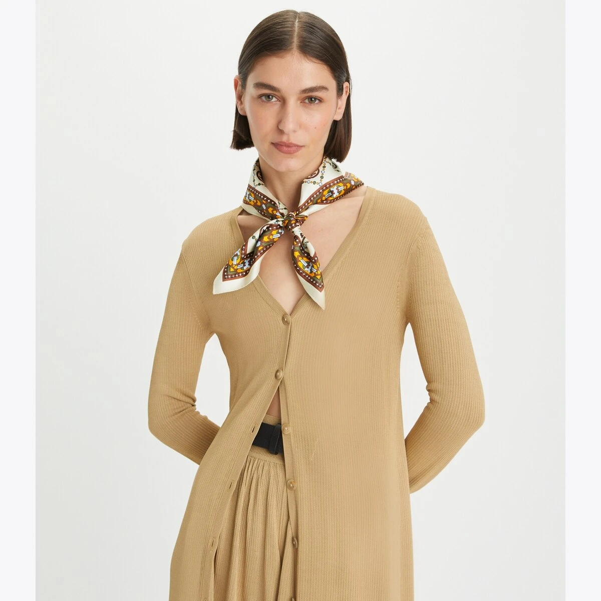 T Monogram is a classic pattern inspired by traditional Pennsylvania Dutch quilting. Our Deco T Monogram Neckerchief is crafted in reversible silk twill for two looks in one. Wear it tied around the neck, as a wrist tie or headband, or add it to a handbag.