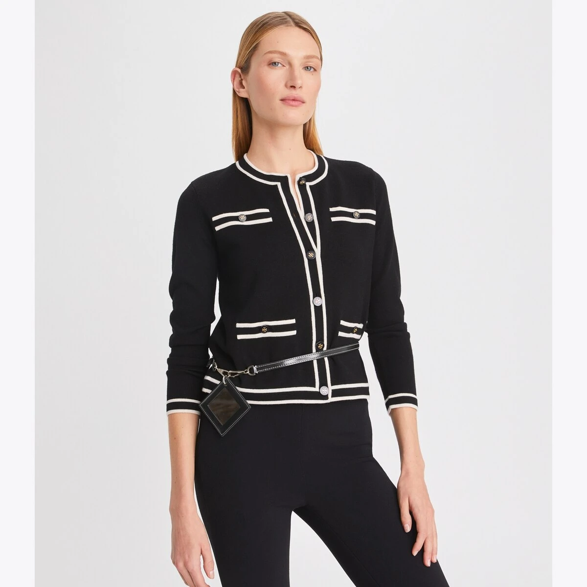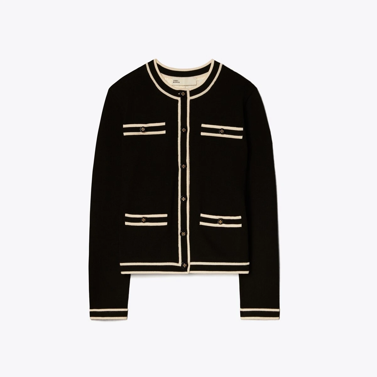 A tailored take on the ladylike sweater. The Kendra Cardigan is knit from super-soft merino wool with contrast trim and a smooth silk lining featuring our T Monogram. It is a polished and versatile layer to wear over everything from t-shirts to sweeping dresses.