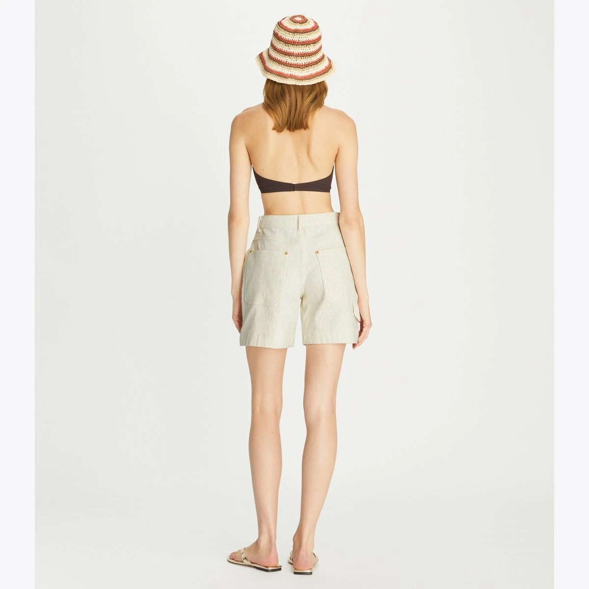A summer favorite. This streamlined short is made from an Italian-crafted linen blend with a subtly slubbed finish that’s inherent to its hand-woven nature. Multiple pockets and a carpenter-inspired hammer loop add utilitarian details.