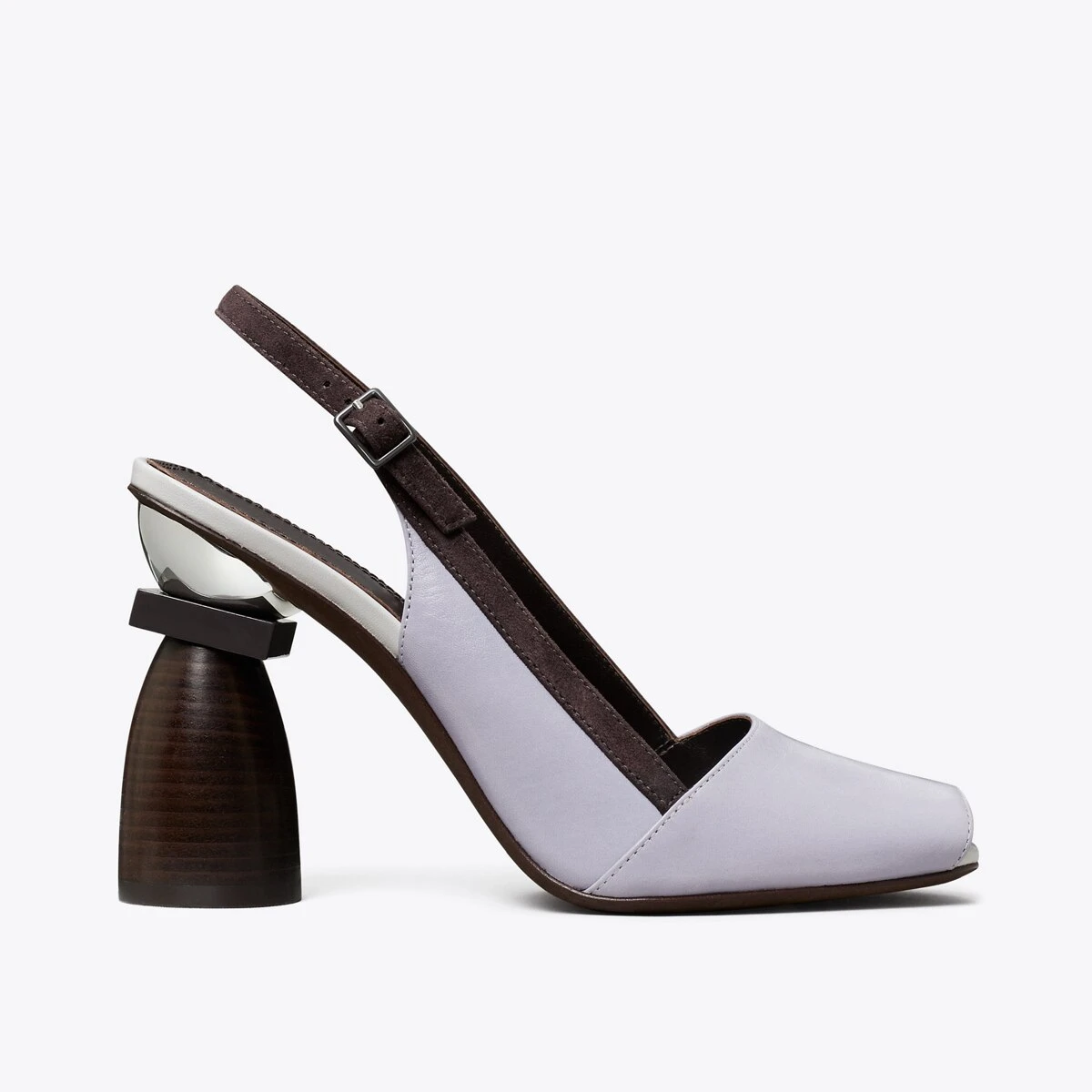 - 3.94″ (100mm) three-piece silver, powder coated metal, stacked leather heel