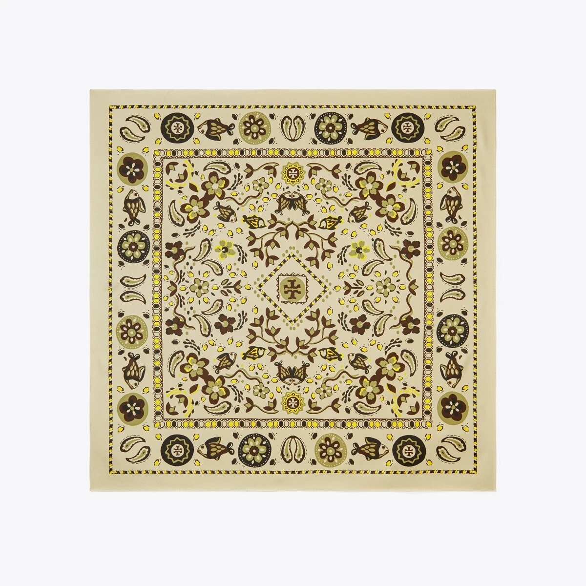 Our double-sided scarf is crafted in silk twill, and each side features paisley and pairs of Pisces fish in a print riffing on a traditional bandana. Wear it loosely draped, wrapped or knotted at the neck.