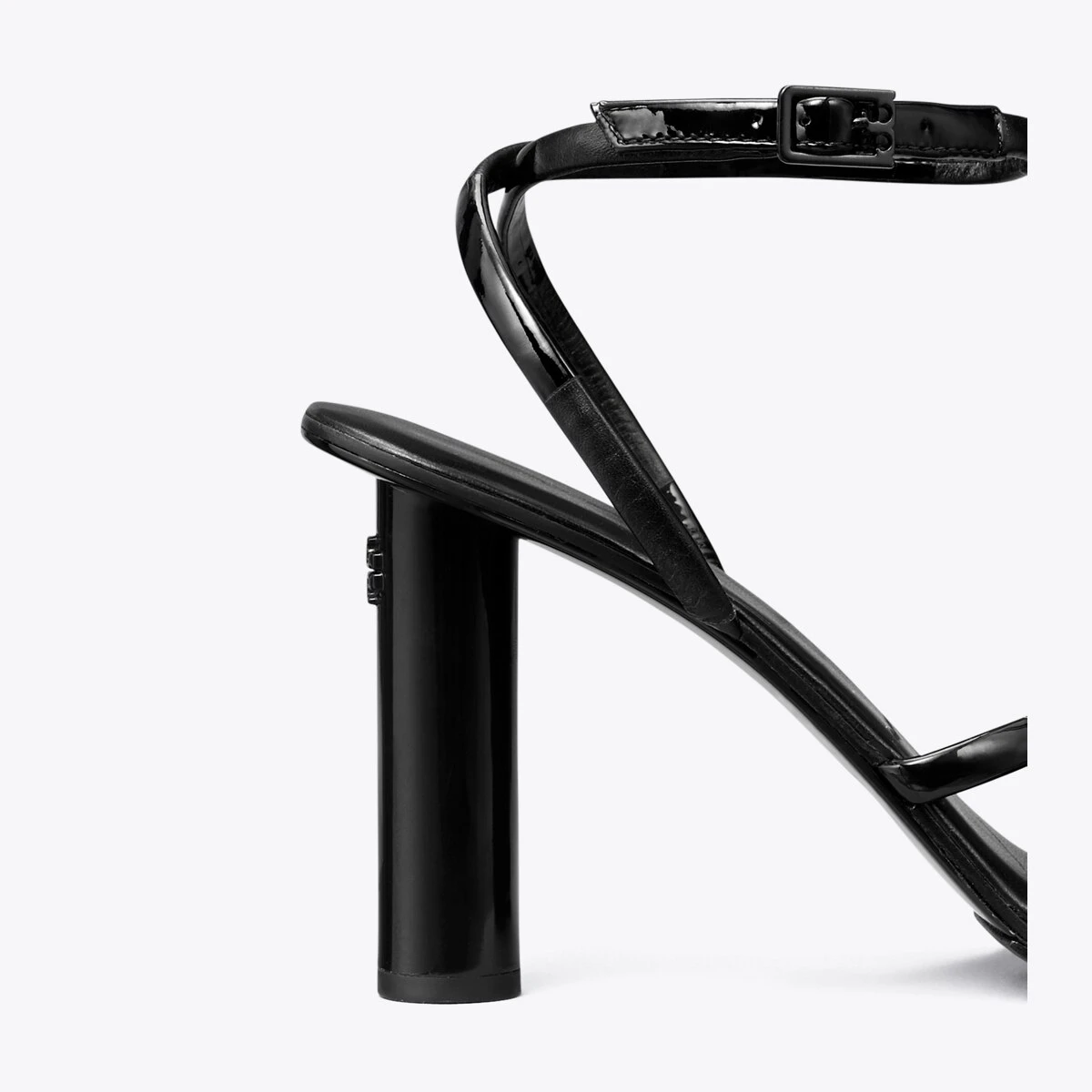The Split Mignon Heel features a multi-strap, asymmetrical design that wraps around the foot and up the ankle. In mixed leather with a lacquered block heel, it’s a flattering and chic heel to dress up any look.