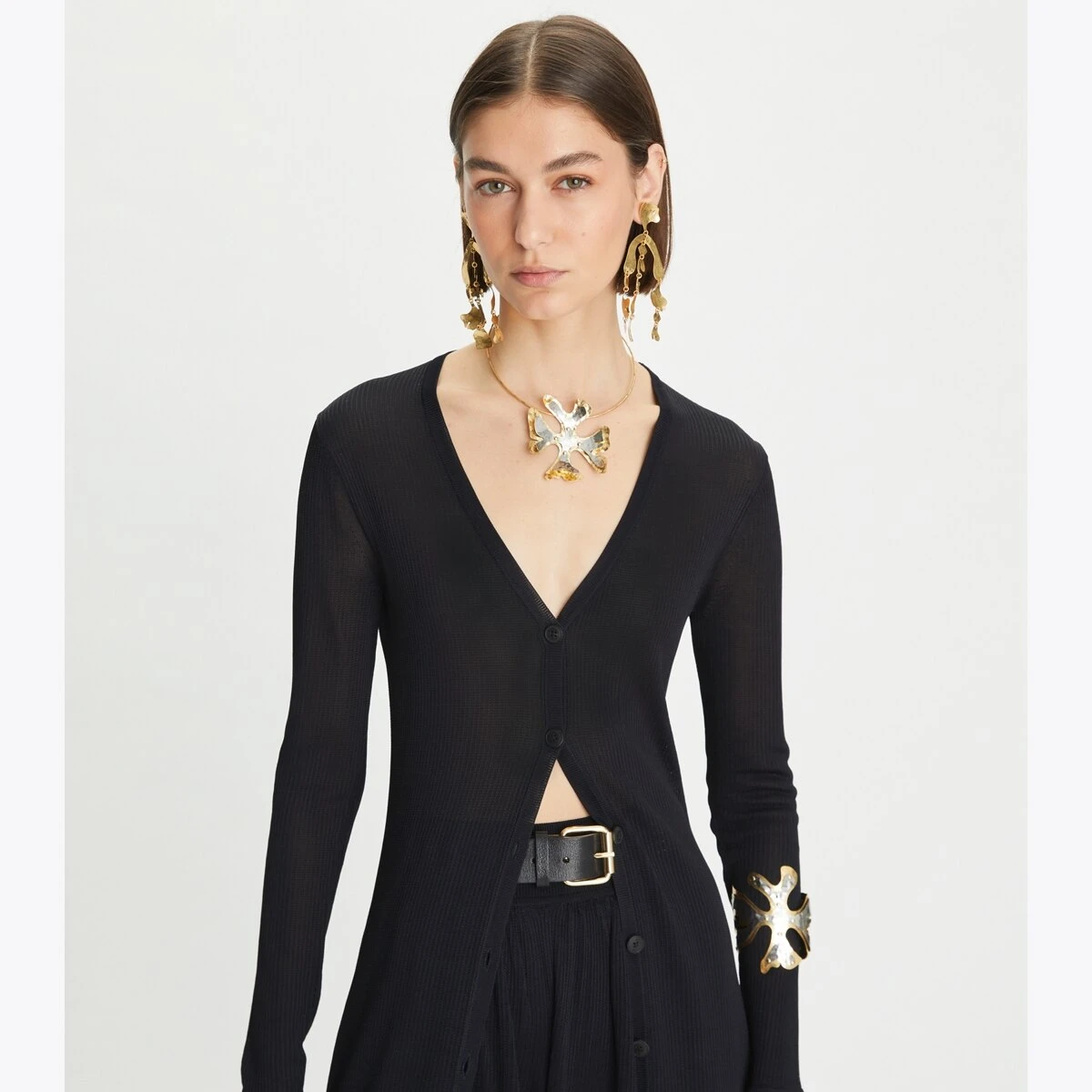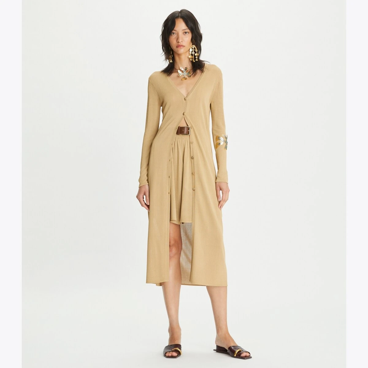 A sweeping silhouette that originates from horseback riding, this duster cardigan combines clean lines and a lightweight knit for effortless wear. Real horn buttons run halfway down the front, allowing you to style it open or closed. Pair it back to the matching knit short for a sophisticated set.